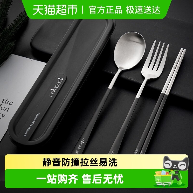 onlycook 便携餐具三件套不锈钢筷勺套装收纳盒学生筷子勺子叉子