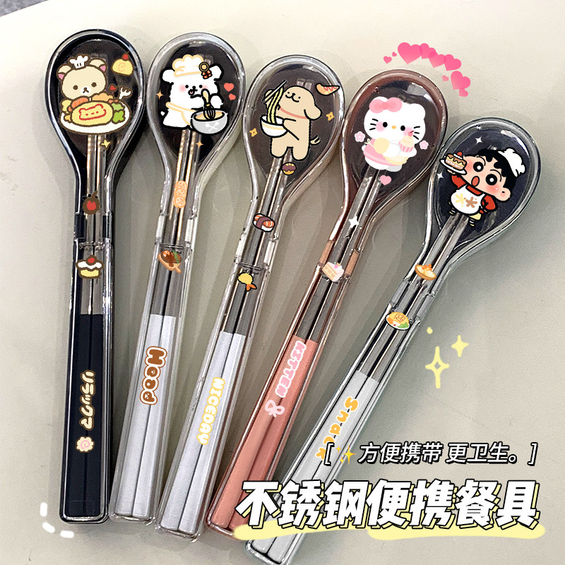 可爱筷勺套装高颜值筷子盒子便携餐具304不锈钢学生筷勺叉三件套