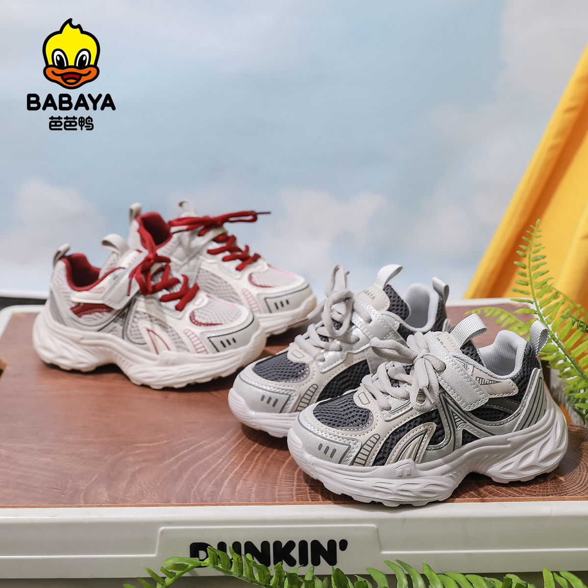 芭芭鸭女童运动鞋韩版休闲跑步鞋2025春季新款男儿童鞋子网面透气