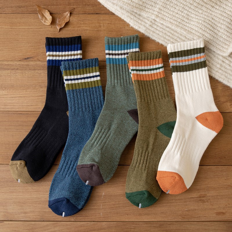 长袜男冬季加厚保暖防臭吸汗纯棉毛巾底中筒袜秋冬条纹日系袜子潮