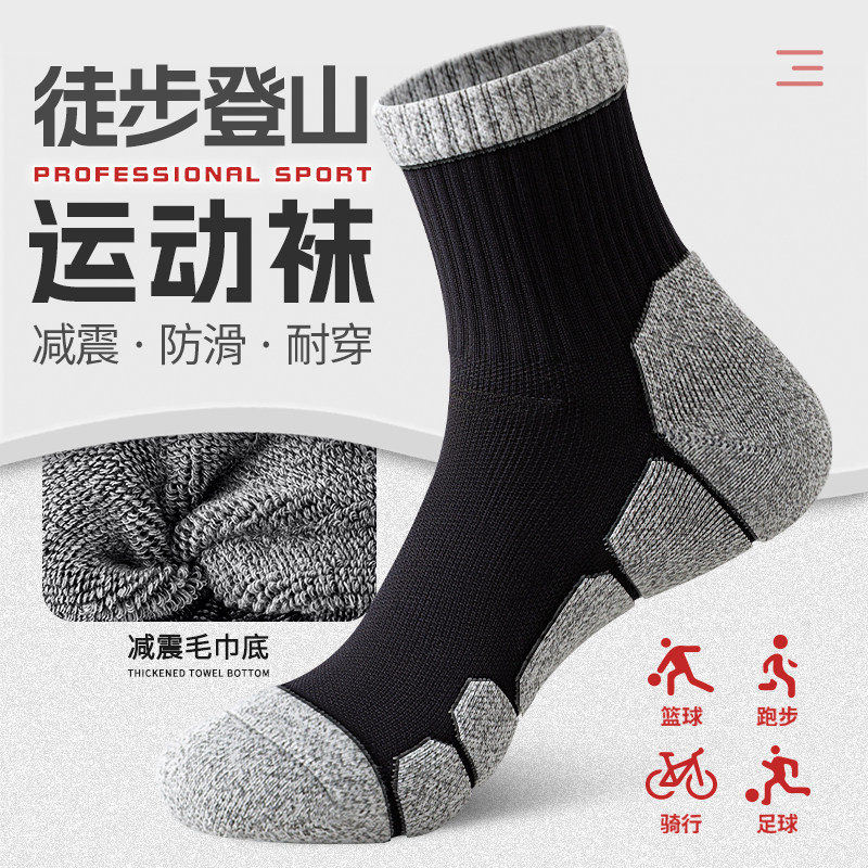专业徒步登山袜男冬季加厚保暖户外跑步运动袜子男款毛巾厚底冬天