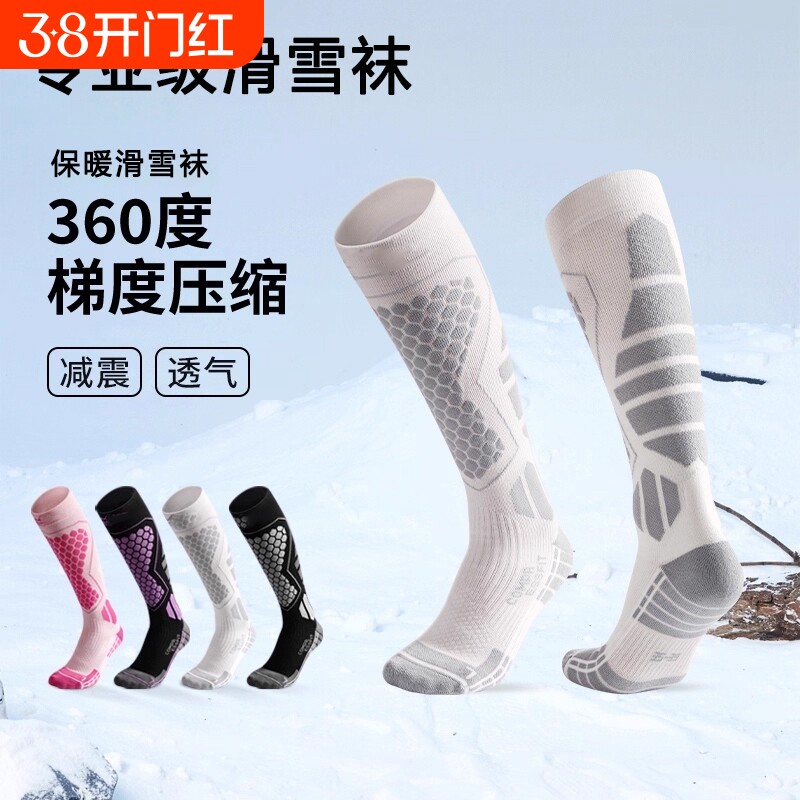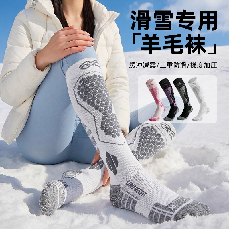 滑雪袜男冬季运动袜保暖加厚小腿长筒袜户外登山防滑徒步压缩袜子