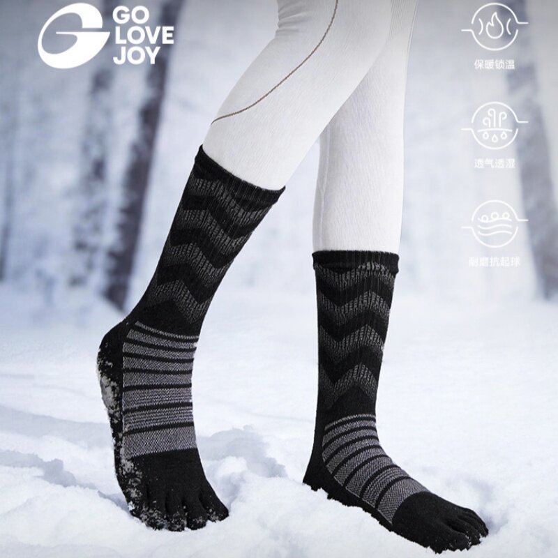 高乐捷美丽诺羊毛滑雪袜男冬季骑行高筒加厚防寒保暖吸湿五趾袜女