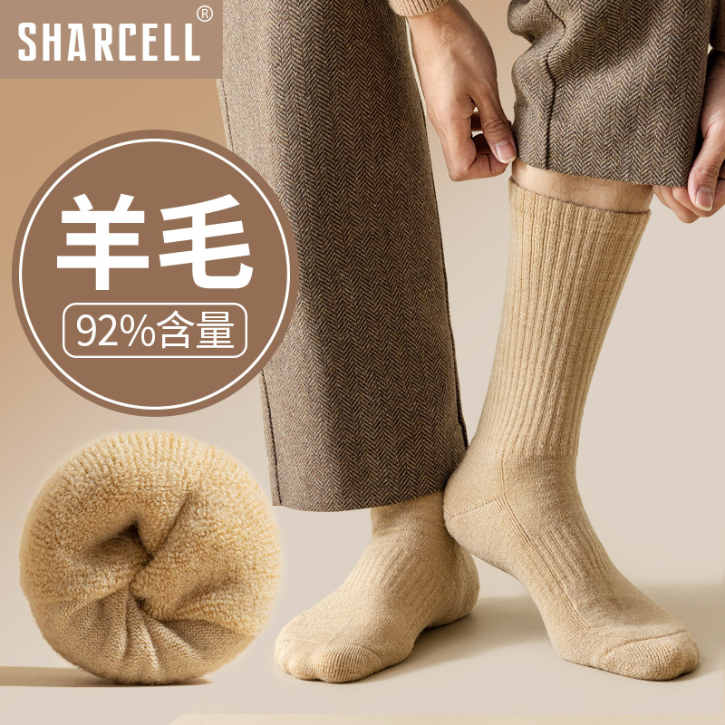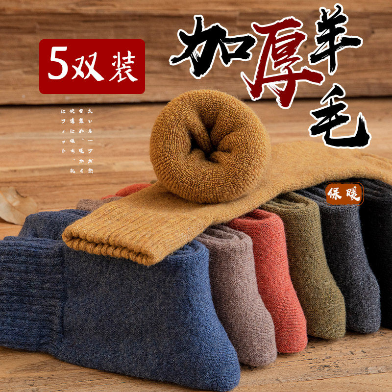羊毛袜男冬季保暖袜加绒加厚中筒袜秋冬款男士超厚长袜毛圈袜冬天
