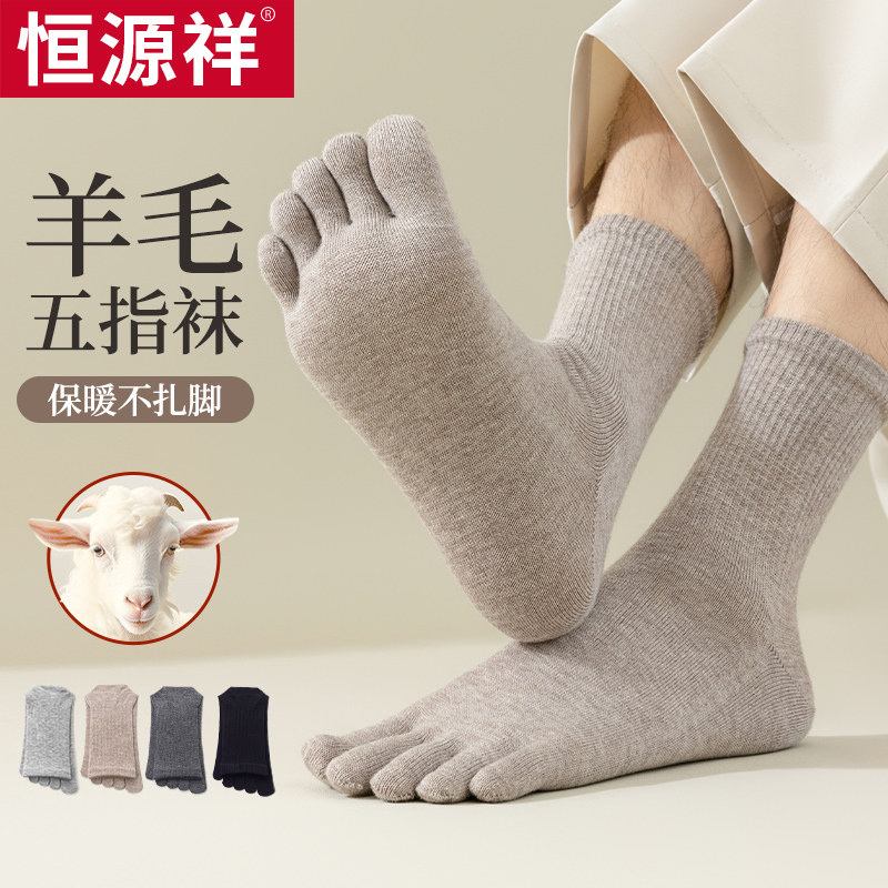 恒源祥五指袜男冬季加厚款羊毛防臭吸汗中筒袜秋冬季长筒男士袜子