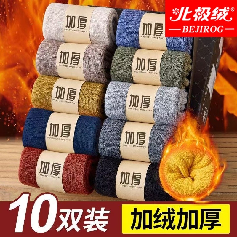北极绒男士袜子加绒加厚秋冬抑菌防臭中筒袜男冬季保暖毛圈袜男生