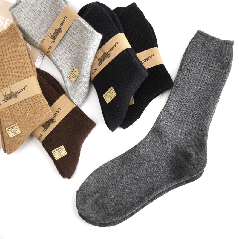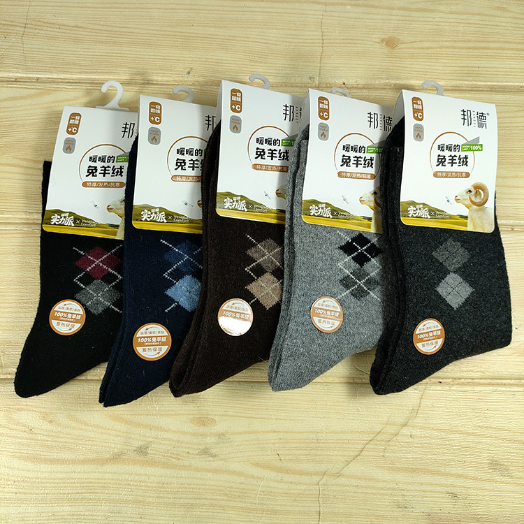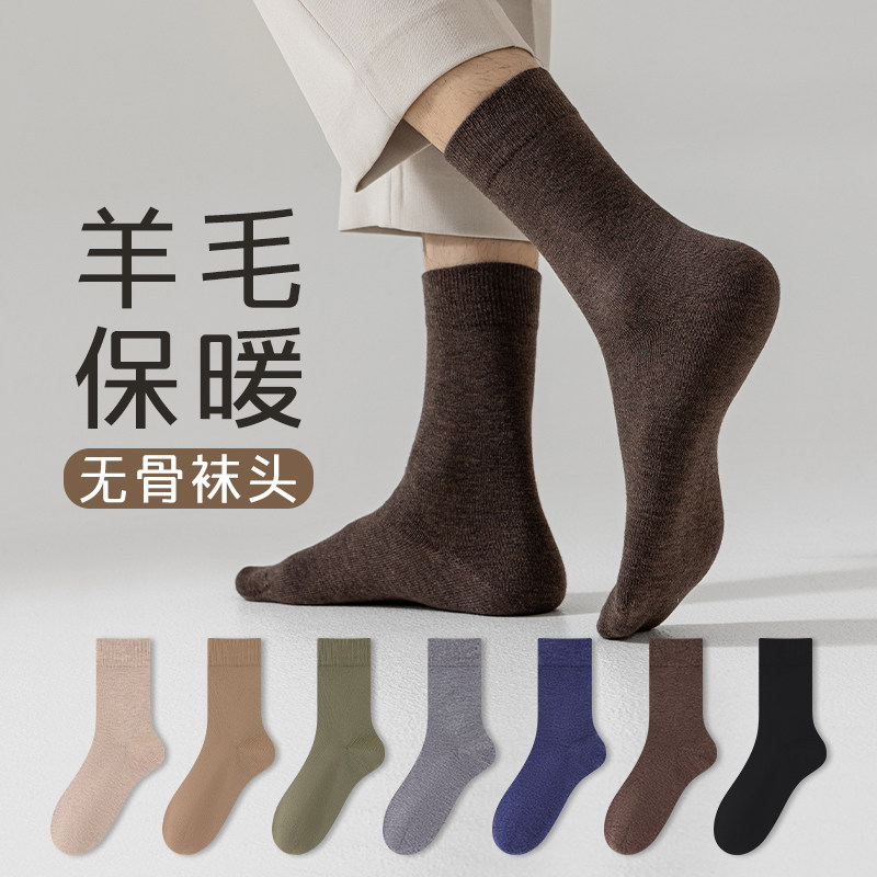 花田靴下羊毛袜男冬季保暖柔软中筒袜长袜青年学生老人纯色抗菌袜