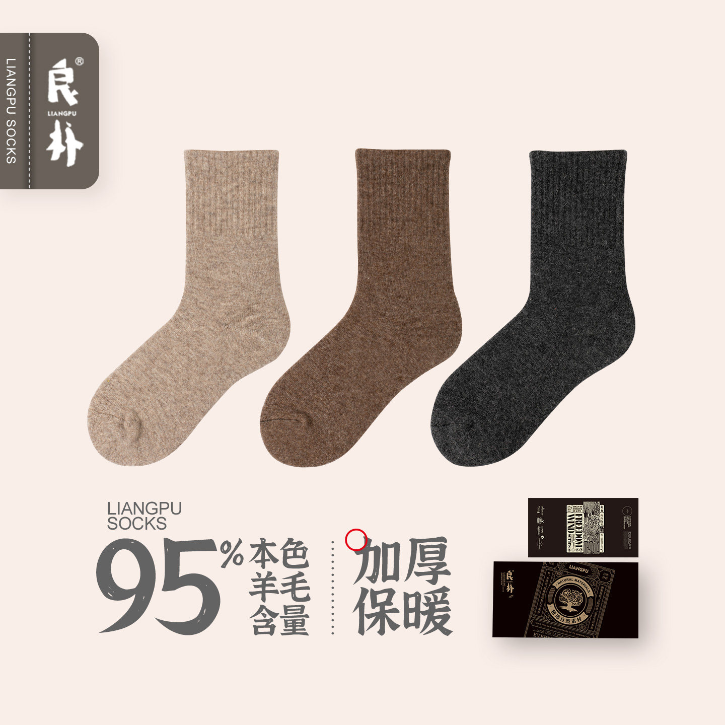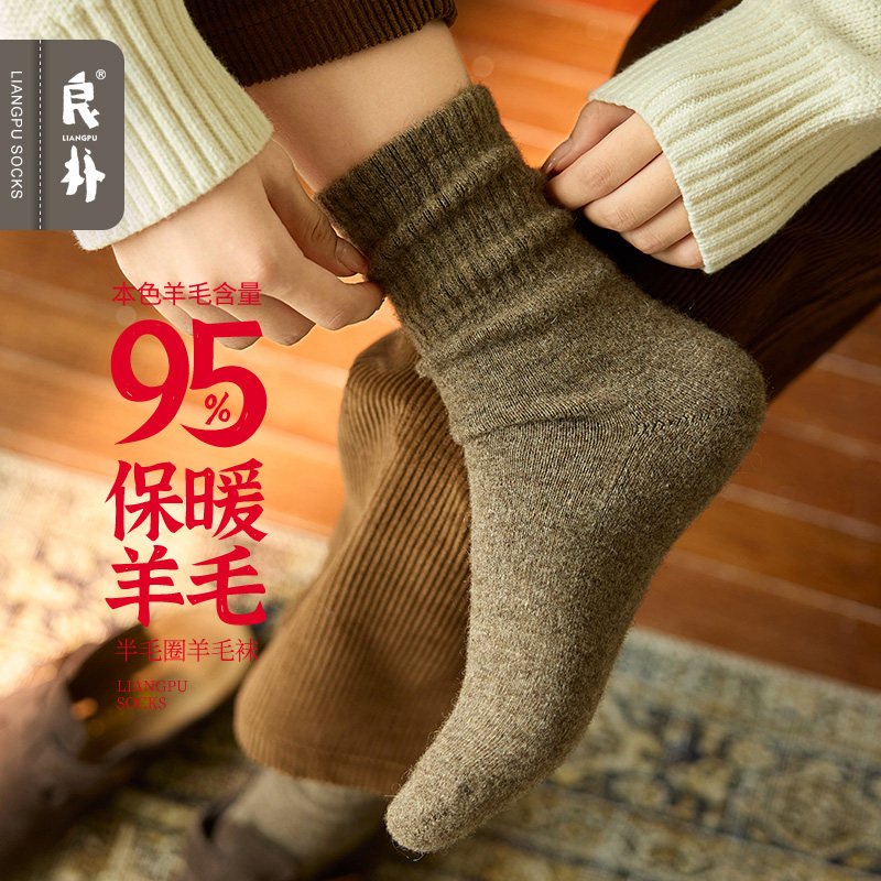 良朴保暖本色羊毛袜女冬天加厚半毛圈中筒袜男冬季远红外女士长袜