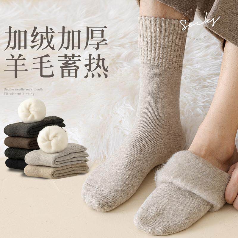 美利奴羊毛袜男冬季保暖加绒加厚袜子拉毛羊绒中筒袜秋冬男士长袜