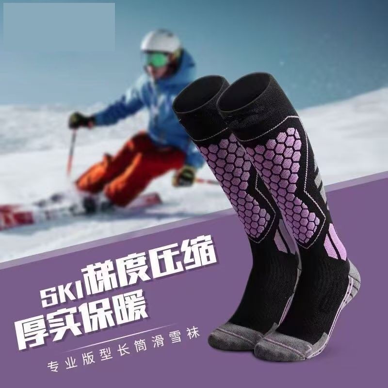 滑雪袜男冬季保暖加厚加绒专业小腿长袜男士登山跑步徒步压缩袜子