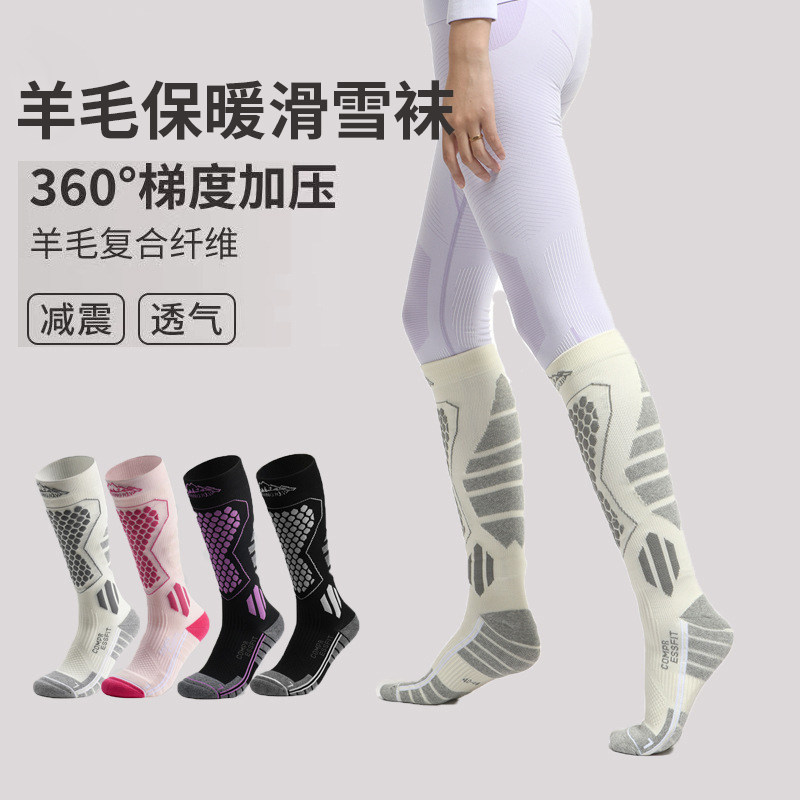 滑雪袜男冬季保暖加厚毛小腿长袜徒步压缩袜子女专业户外登山羊毛