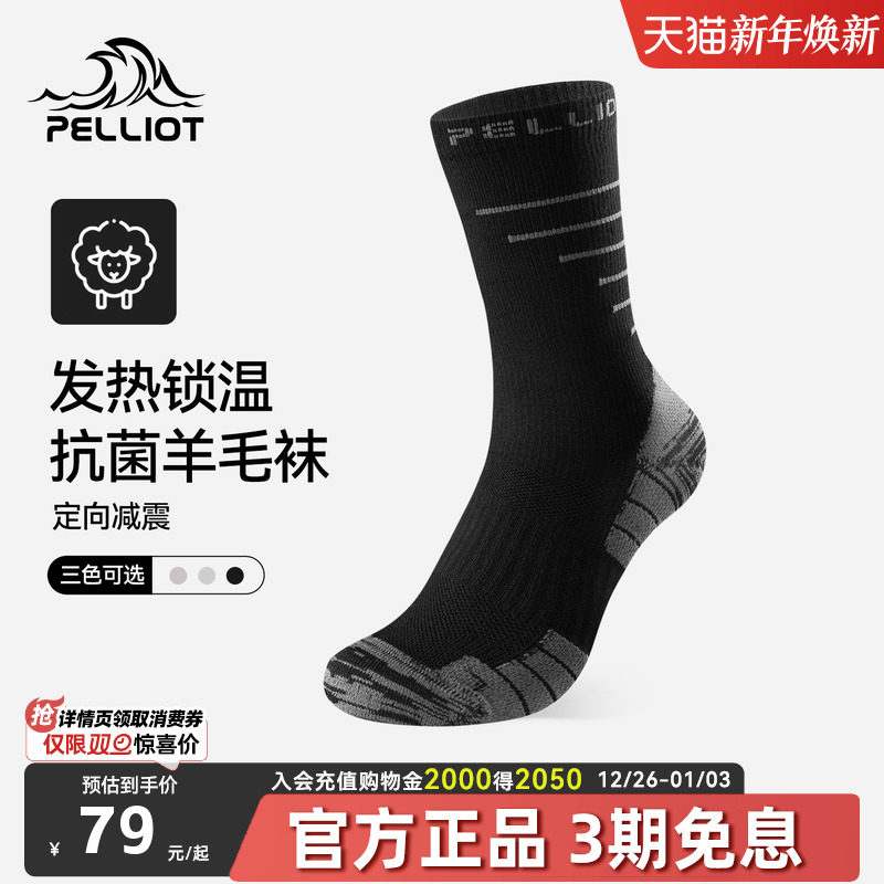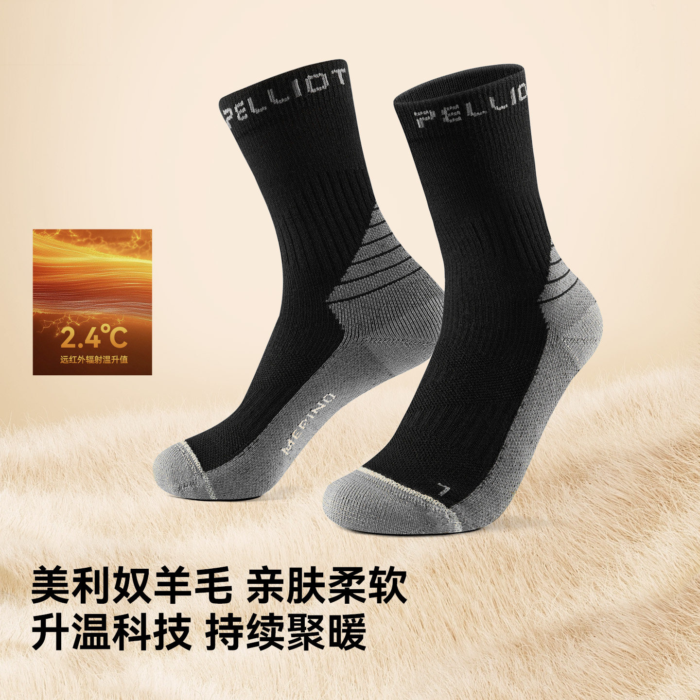 伯希和户外袜美利奴羊毛加厚登山袜男冬季徒步保暖跑步运动袜子女