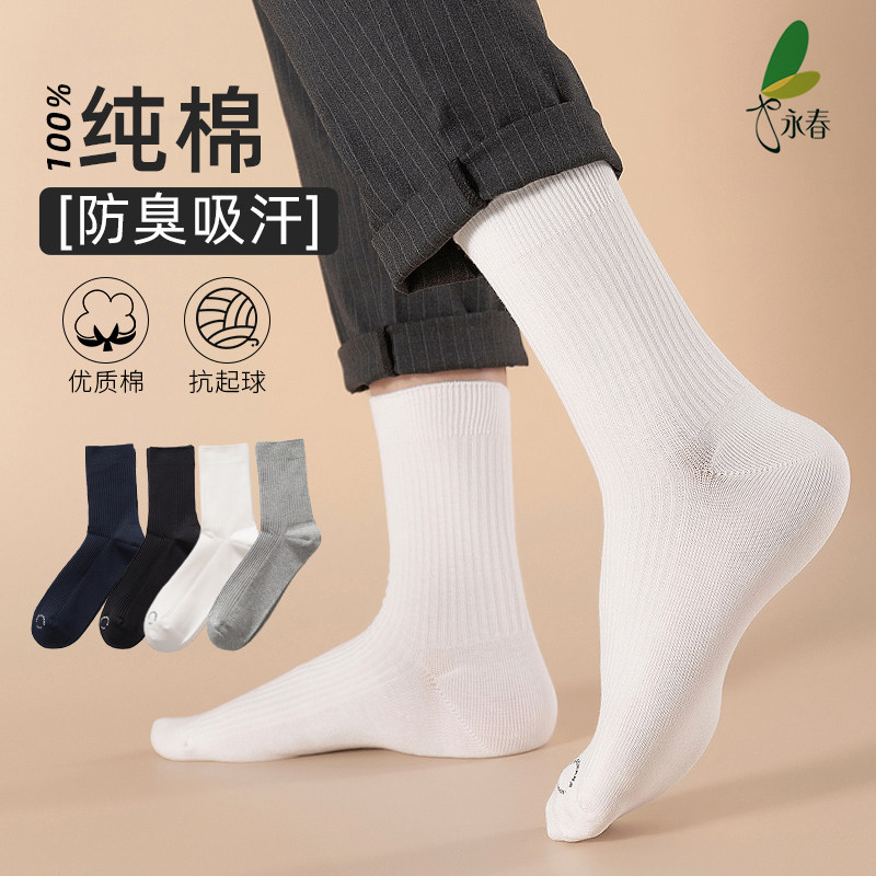 佐印袜子男款纯棉纱线中筒男士7a抗菌男生运动毛巾底白色长筒冬季