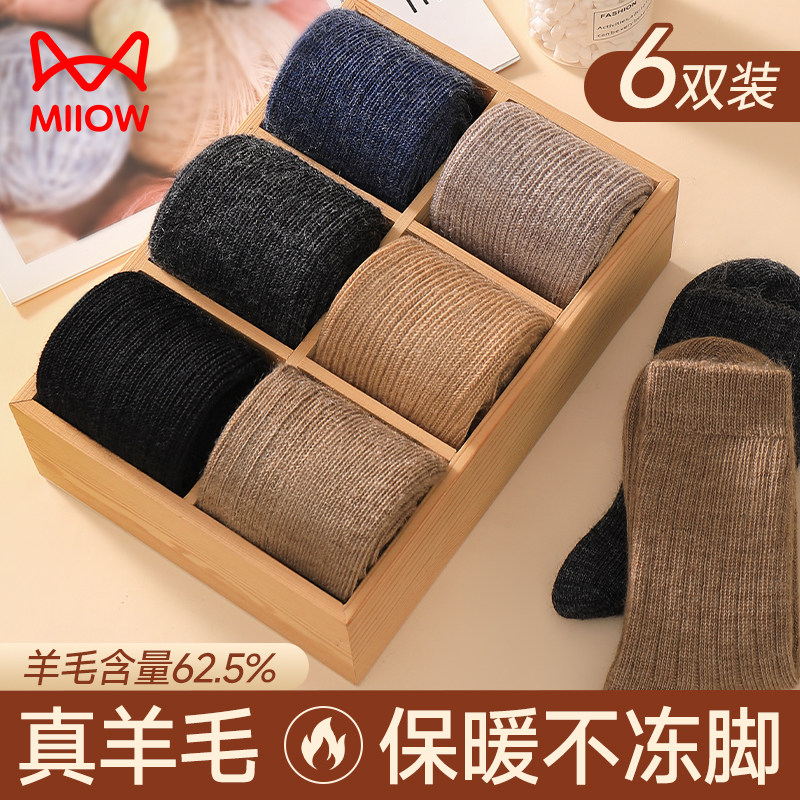 猫人羊毛袜男冬季加绒加厚防寒发热保暖中筒袜春秋毛圈厚袜子男士