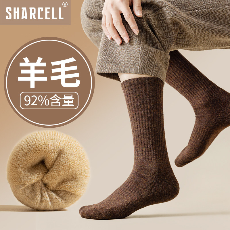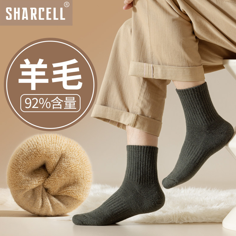 羊毛袜子男士美利奴秋冬季加绒加厚中筒袜保暖防臭新款棉冬天长袜