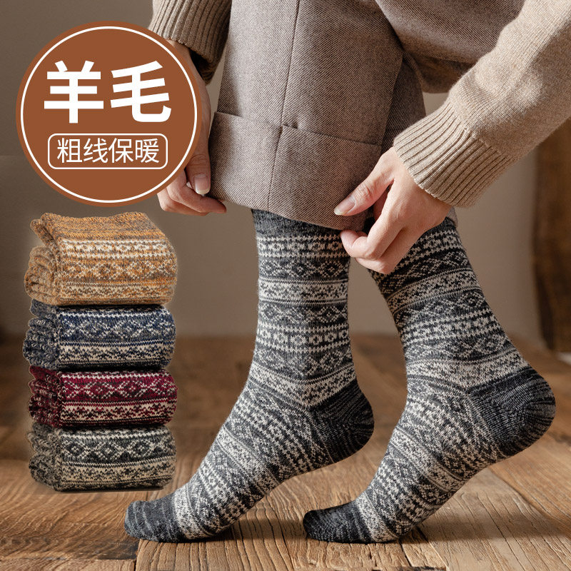 羊毛袜男冬季加绒加厚保暖中筒棉袜复古秋冬东北防寒长筒长靴袜潮