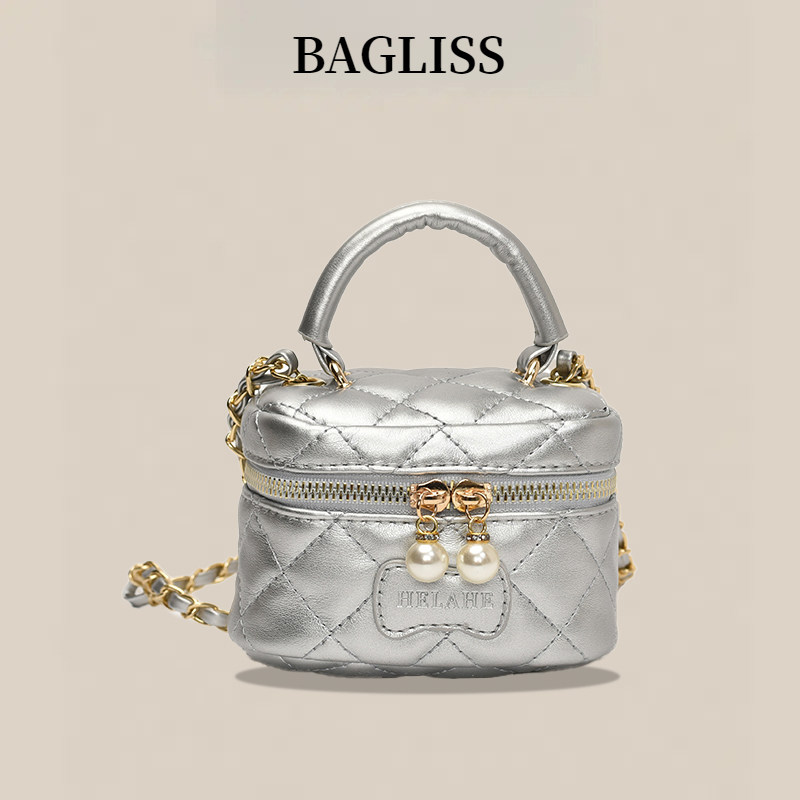 Mankok菱格小金球链条包女新款迷你手提盒子包百搭轻奢单肩斜挎包