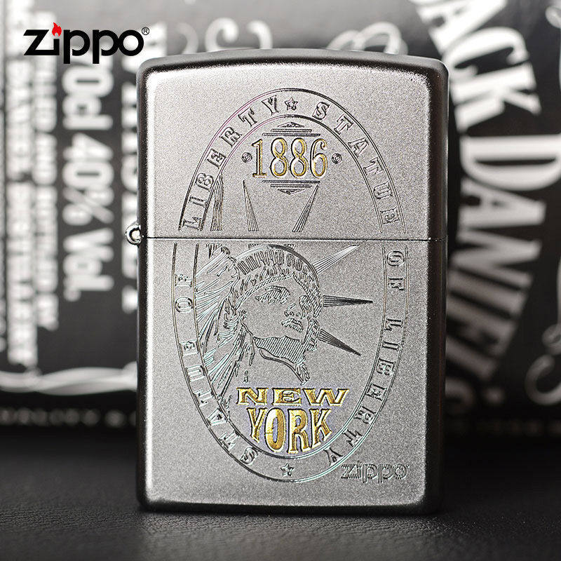 正品Zippo防风打火机 緞纱雕刻男士煤油火机zoop自由女神