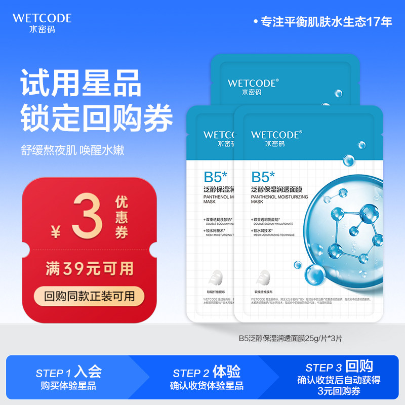 【U先试用】水密码泛醇玻尿酸面膜补水保湿护肤品秋冬官方正品女