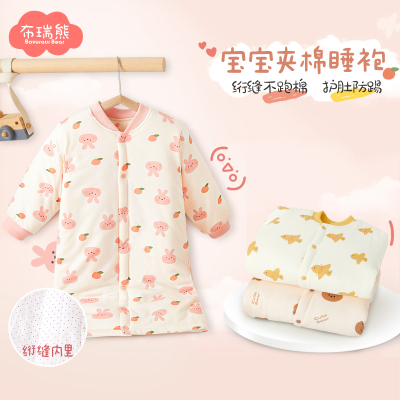 宝宝睡袍冬季婴儿睡衣秋冬款儿童夹棉加厚纯棉a类男童女幼儿睡袋