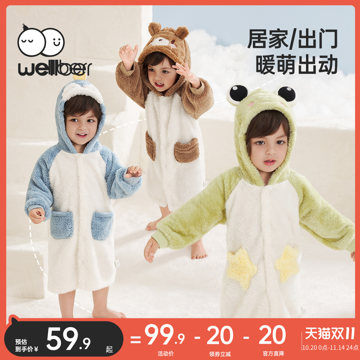 威尔贝鲁儿童珊瑚绒睡衣秋冬加厚2025新款宝宝睡袍女童男童家居服