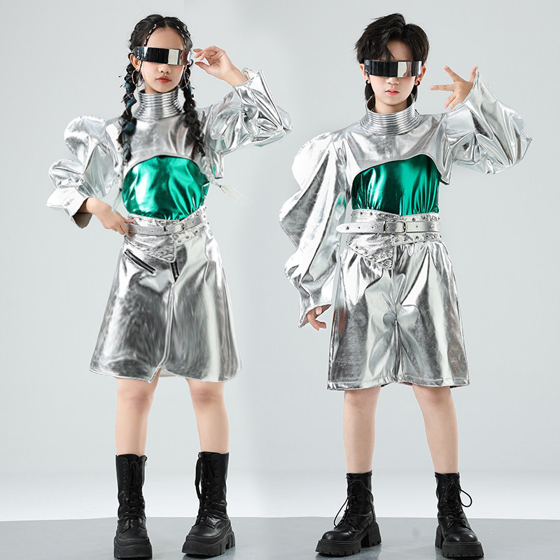 儿童科技感演出服男女童银色未来元宇宙套装少儿走秀潮服太空服装