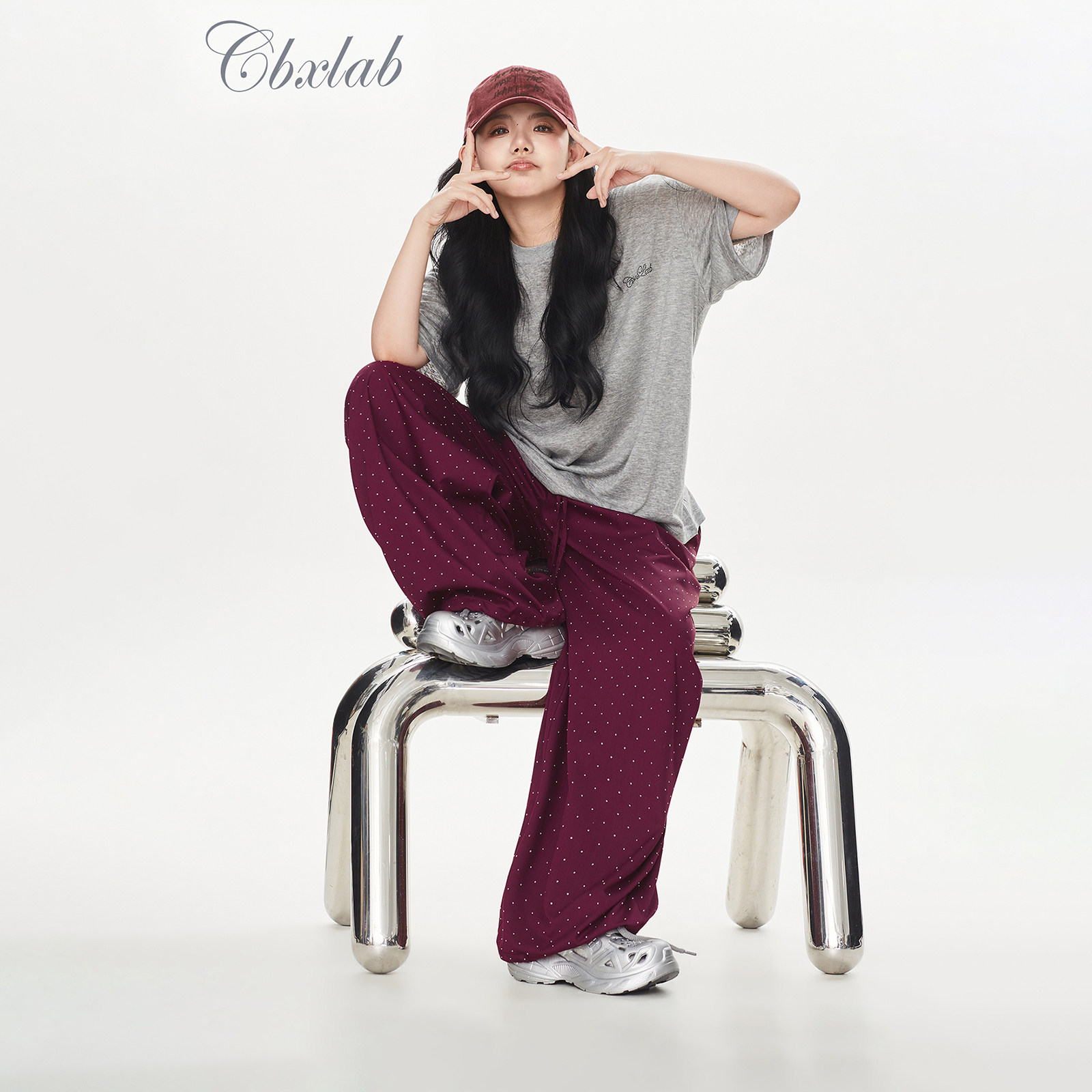 CBXLAB街舞潮牌枣红复古高级套装细钻辣妹阔腿长裤美式爵士上衣女