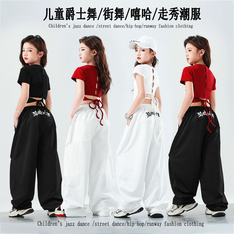 女 童红色爵士舞演出服少儿jazz背心套装儿 童街舞服装女孩裤子潮
