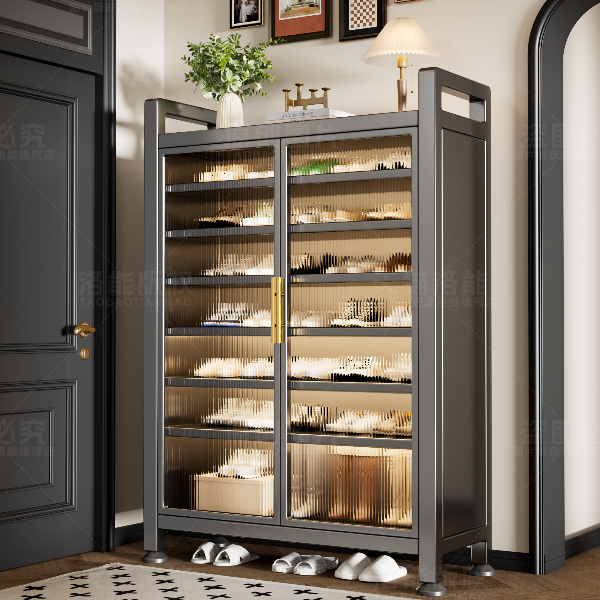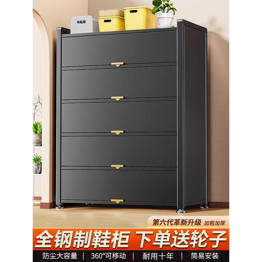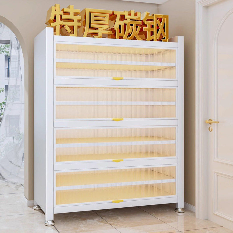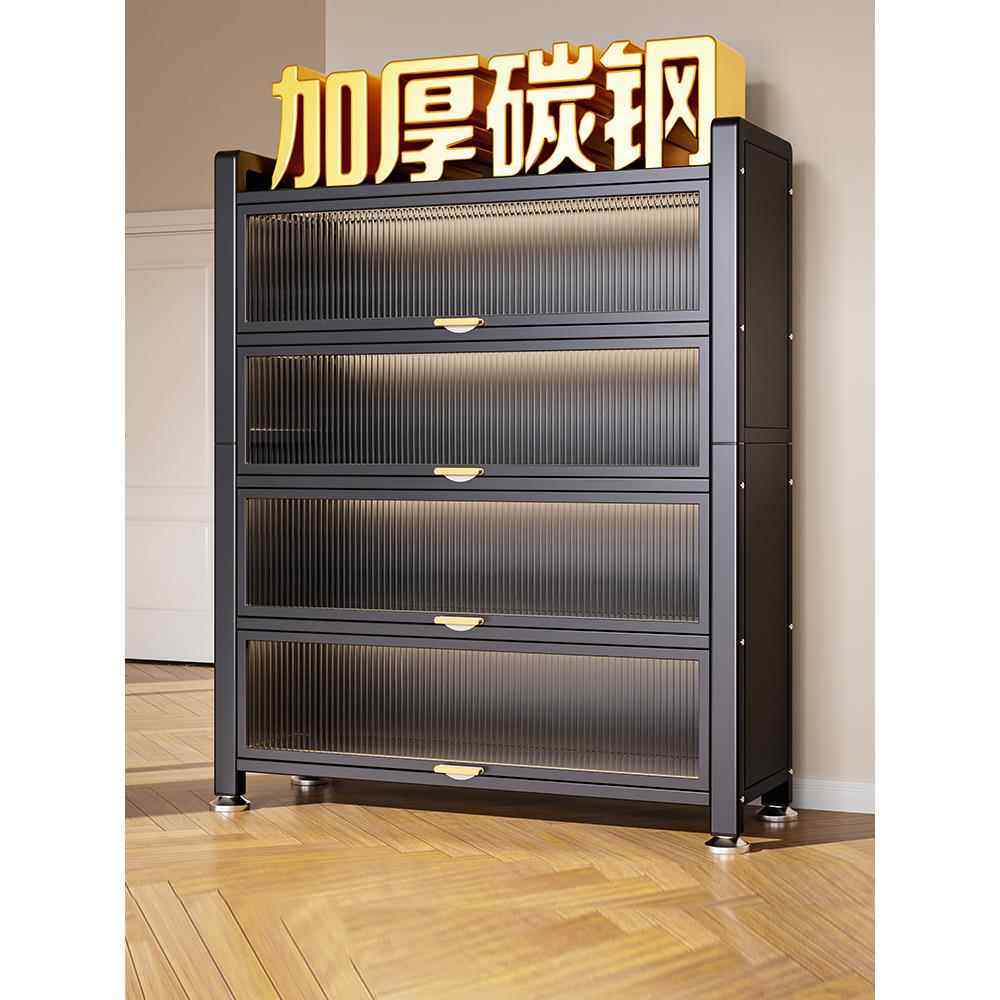 家用钢制鞋柜门口落地多层入户玄关大容量翻开门收纳金属防尘鞋架