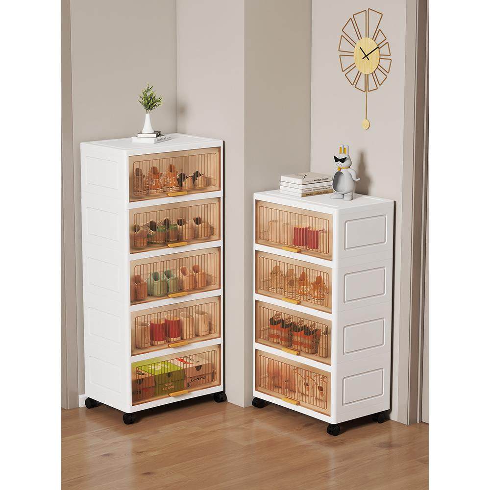 家用鞋柜门口走廊多层钢制简易收纳柜大容量可移动带门鞋架储物柜