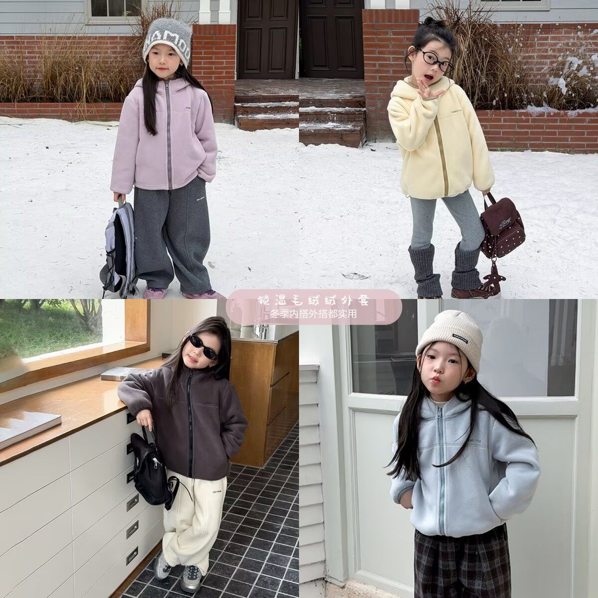 - 学院风加绒套头卫衣女