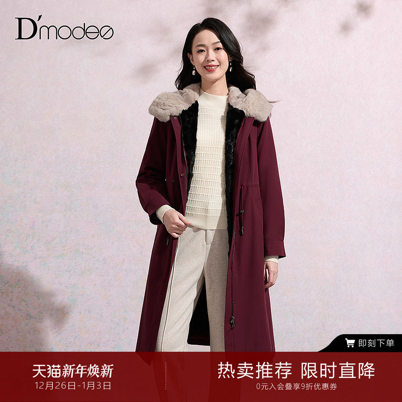 黛玛诗冬季水貂毛内胆抽绳尼克服大衣女通勤保暖外套2025新款