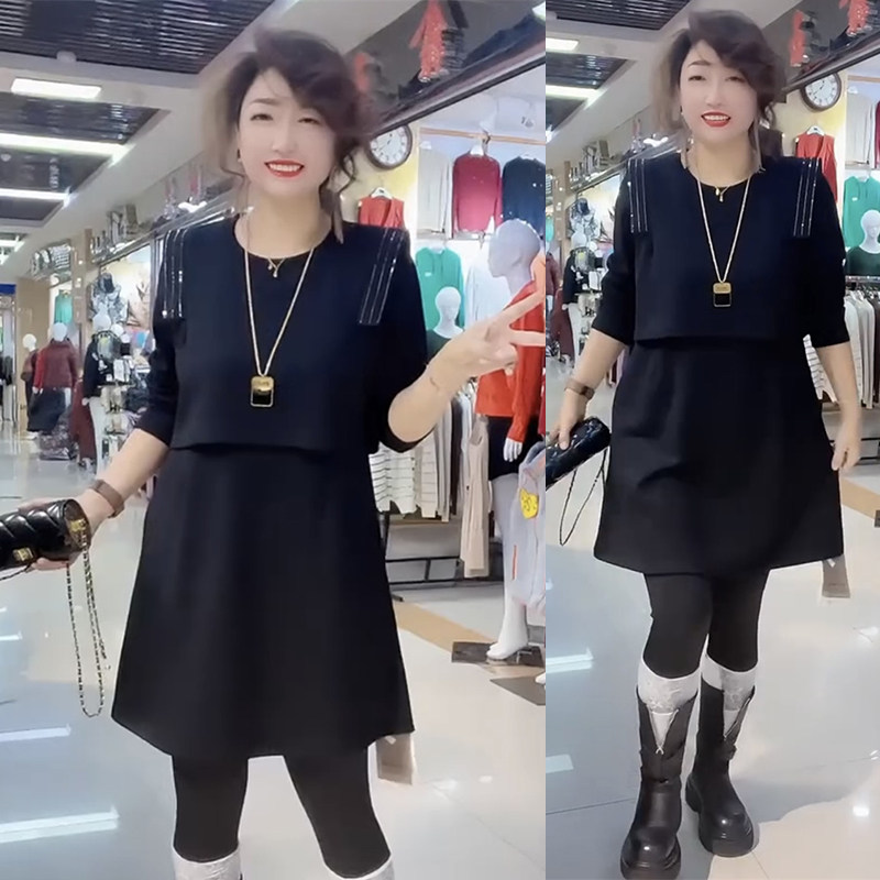 大码女装时尚高级感连衣裙秋冬胖妹妹mm遮肚显瘦内打底假两件裙子