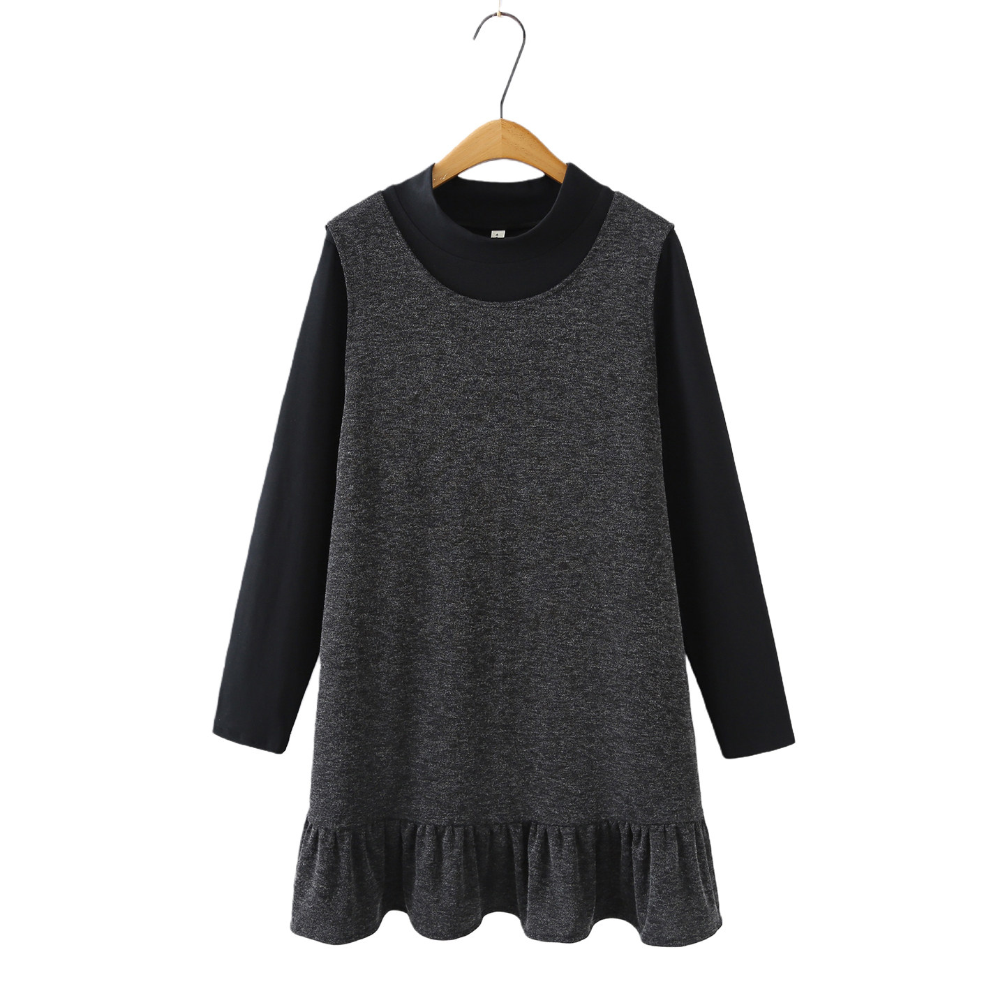 大码针织拼接连衣裙秋冬新款显瘦遮肚百搭女裙胖妹妹气质打底裙潮