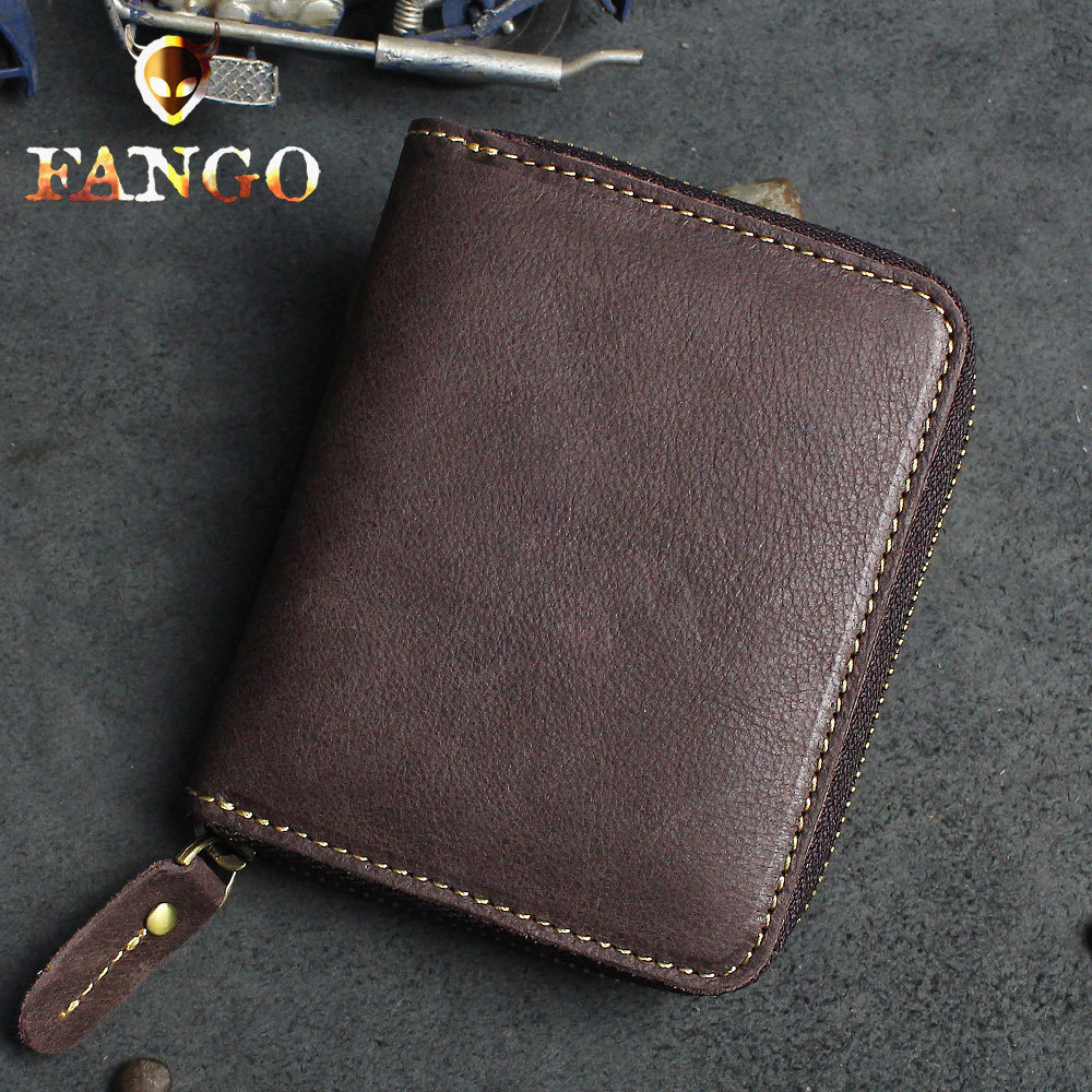 手工真皮短款拉链钱包男头层牛皮复古竖款钱包女多功能情侣钱包潮