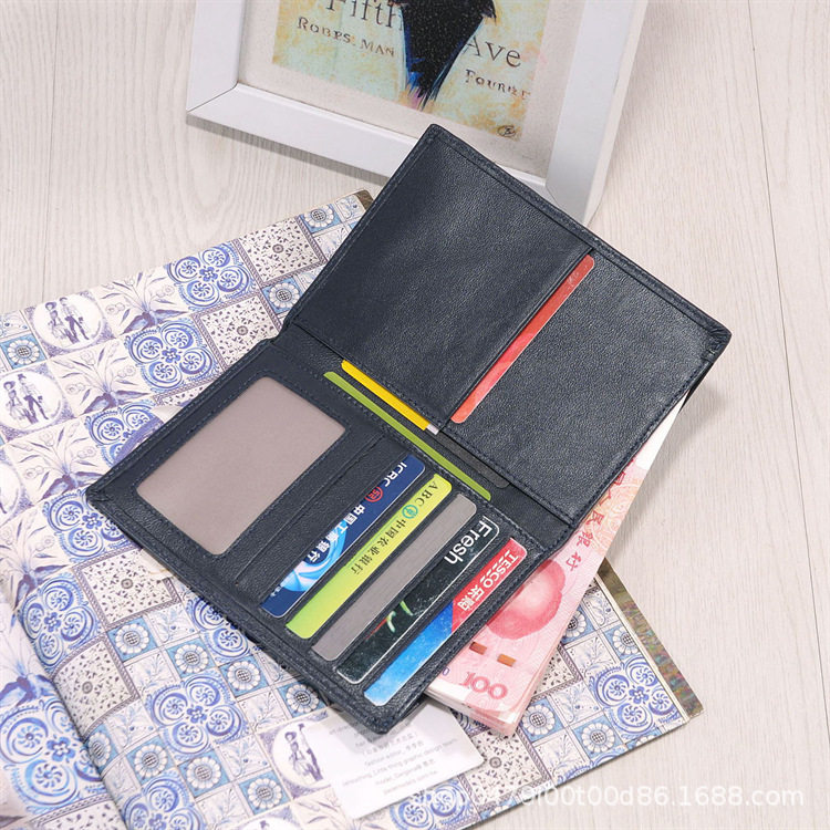 漫色植鞣头层牛皮短款钱包男女情侣款真皮复古驾驶证卡包一体钱夹