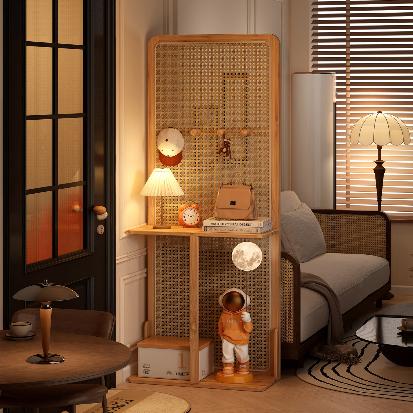 藤编屏风入户正对门玄关隔断客厅穿堂风置物架卧室遮挡床镂空格栅