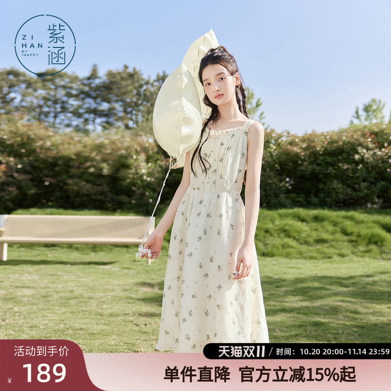 谜底桑蚕丝吊带裙25秋俏皮软语清新柔美花色长裙连衣裙257ML7789