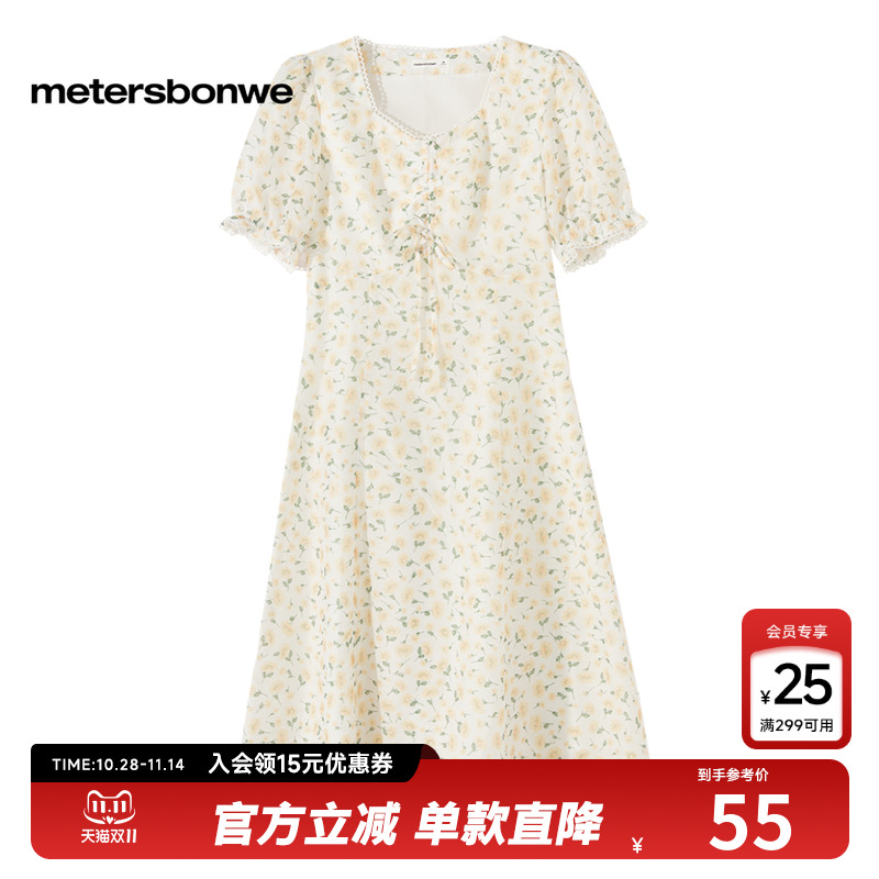 美特斯邦威女款夏季连衣裙潮流通勤肌理感清新小碎花甜美法式长Q