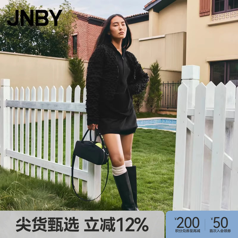 JNBY/江南布衣春秋季立体造型针织衫女短款宽松休闲长袖开衫毛衣