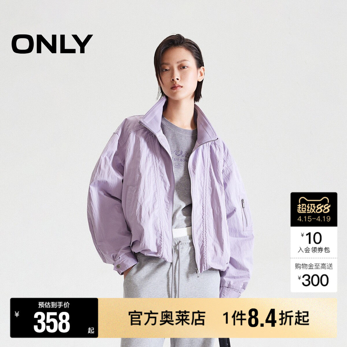 【ONLY奥莱】春季新款领口针织拼接纯色立领宽松短款夹克外套女