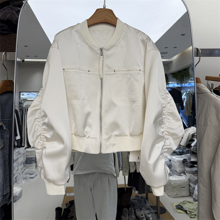 韩国26春新款针织棒球领皱皱袖韩版休闲宽松夹克短款外套上衣701