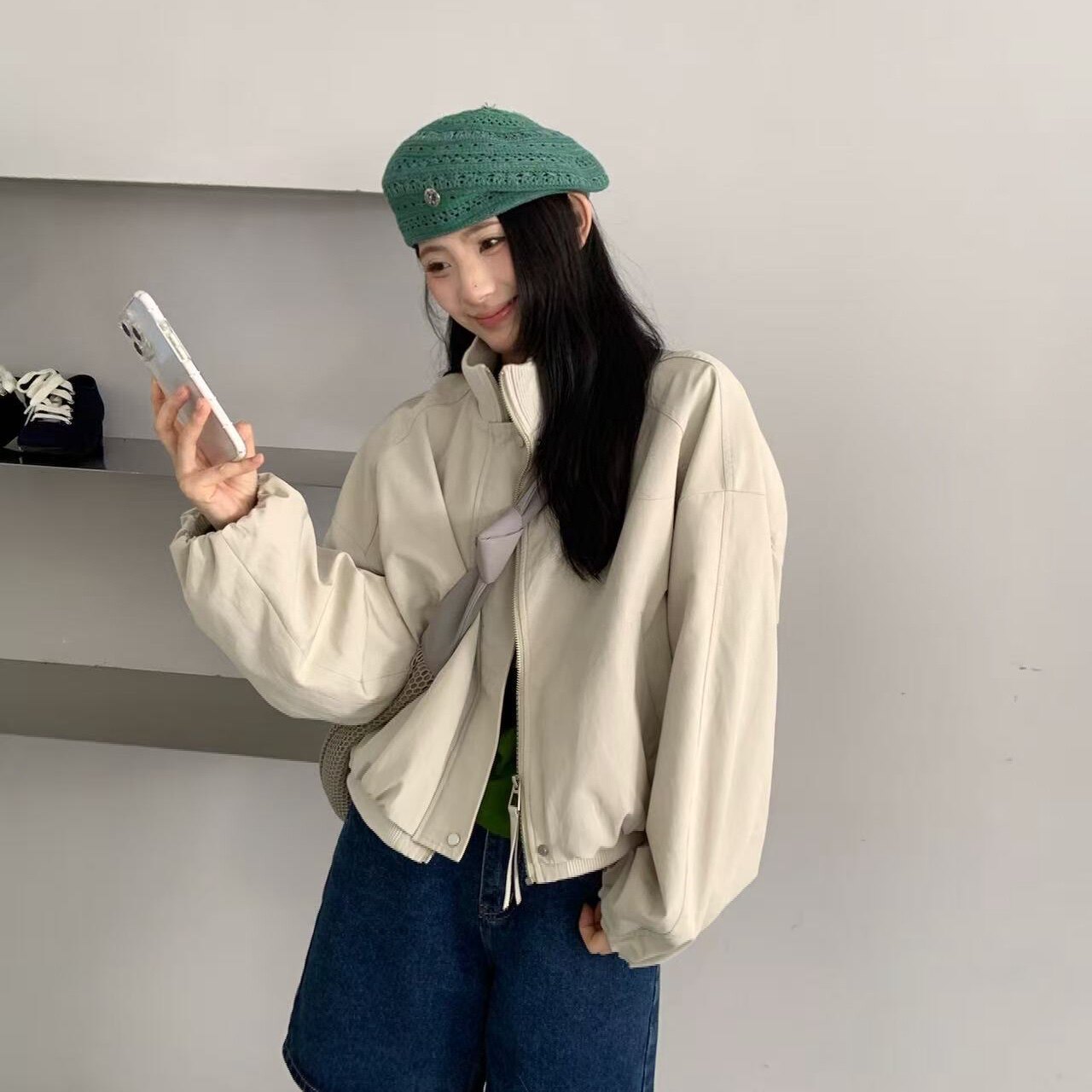2026春季新款韩系简约针织立领短款外套女宽松百搭小个子夹克上衣