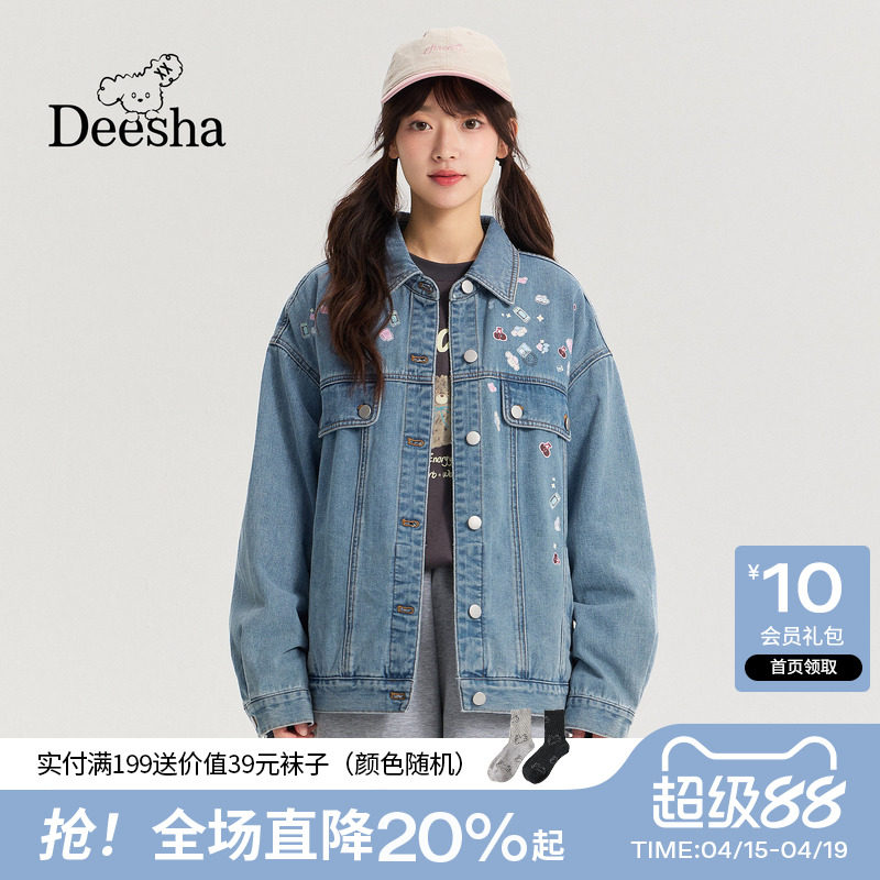 笛莎2026春新款青少年初高中女生宽松短款贴纸印花学院风牛仔外套