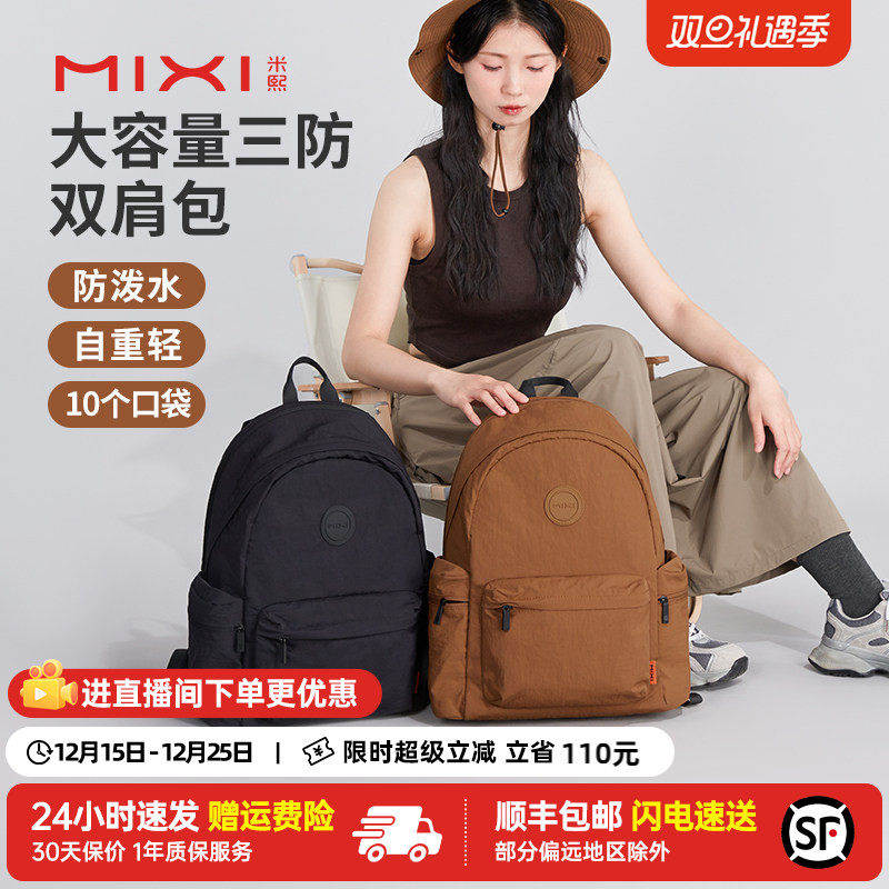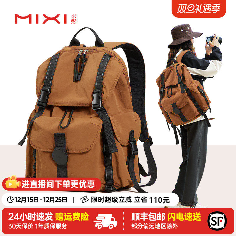 米熙户外轻便大容量双肩包女2025新款旅行防水电脑背包男旅游书包