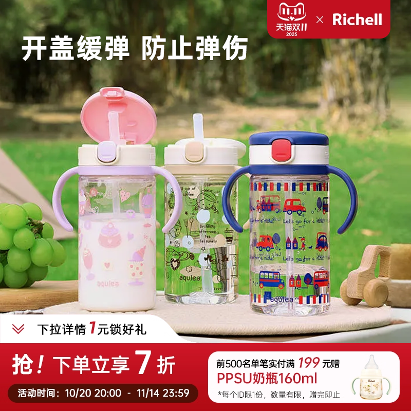 Richell利其尔透透杯1-2-3以上宝宝水杯儿童吸管杯上学专用幼儿园