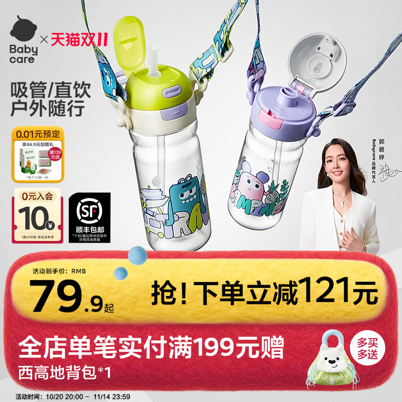babycare运动水杯幼儿园儿童吸管杯男女上学专用学生杯子直饮水壶