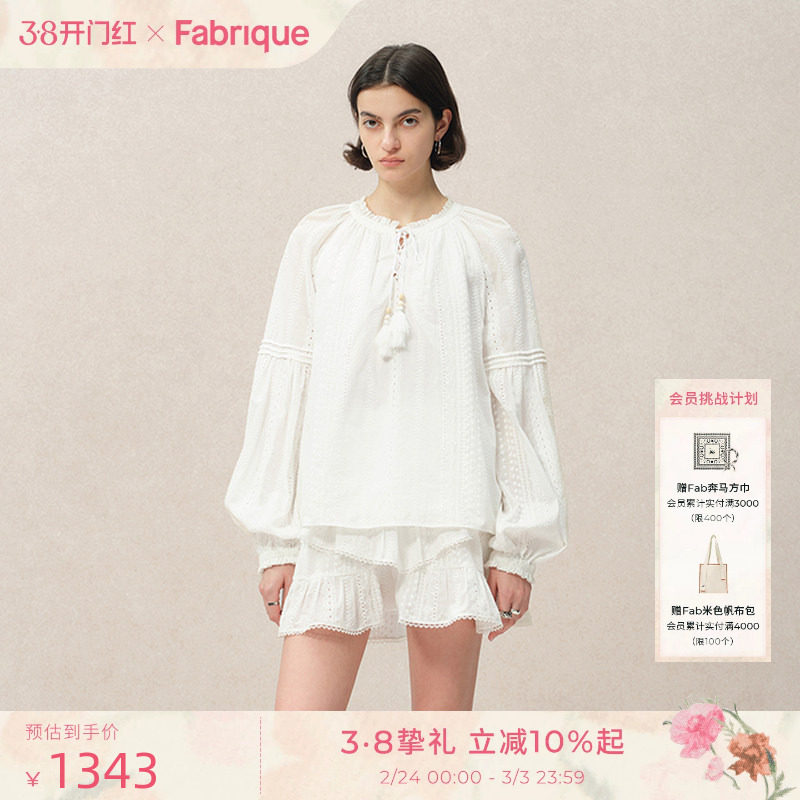 Fabrique白月光法式纯棉刺绣衬衫短裙度假套装女春秋上衣