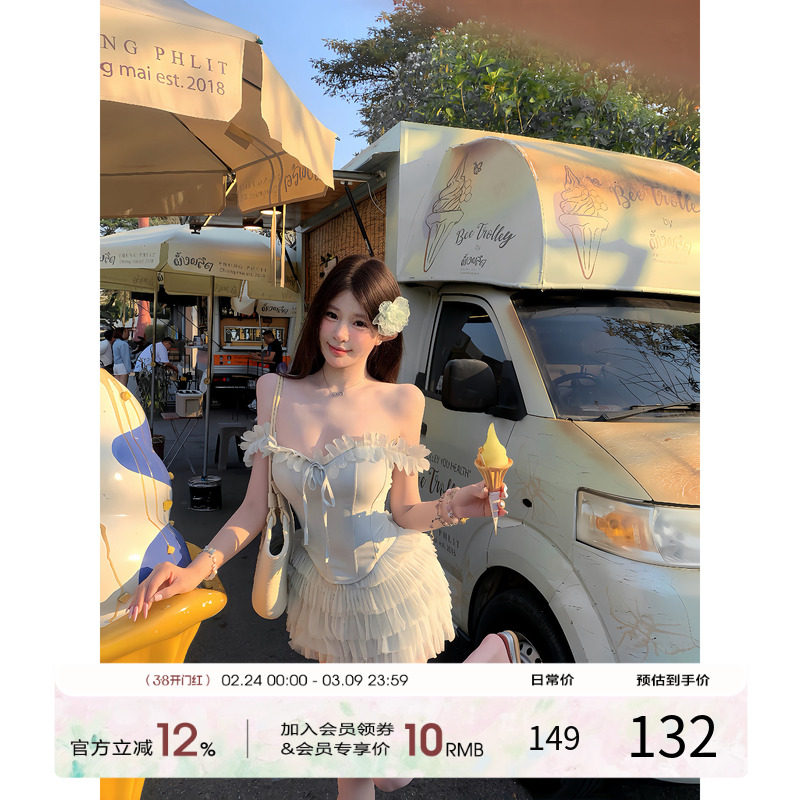 项天鹅er 法式早春穿搭套装女2026新款纯欲鱼骨胸衣抹胸上衣短裙