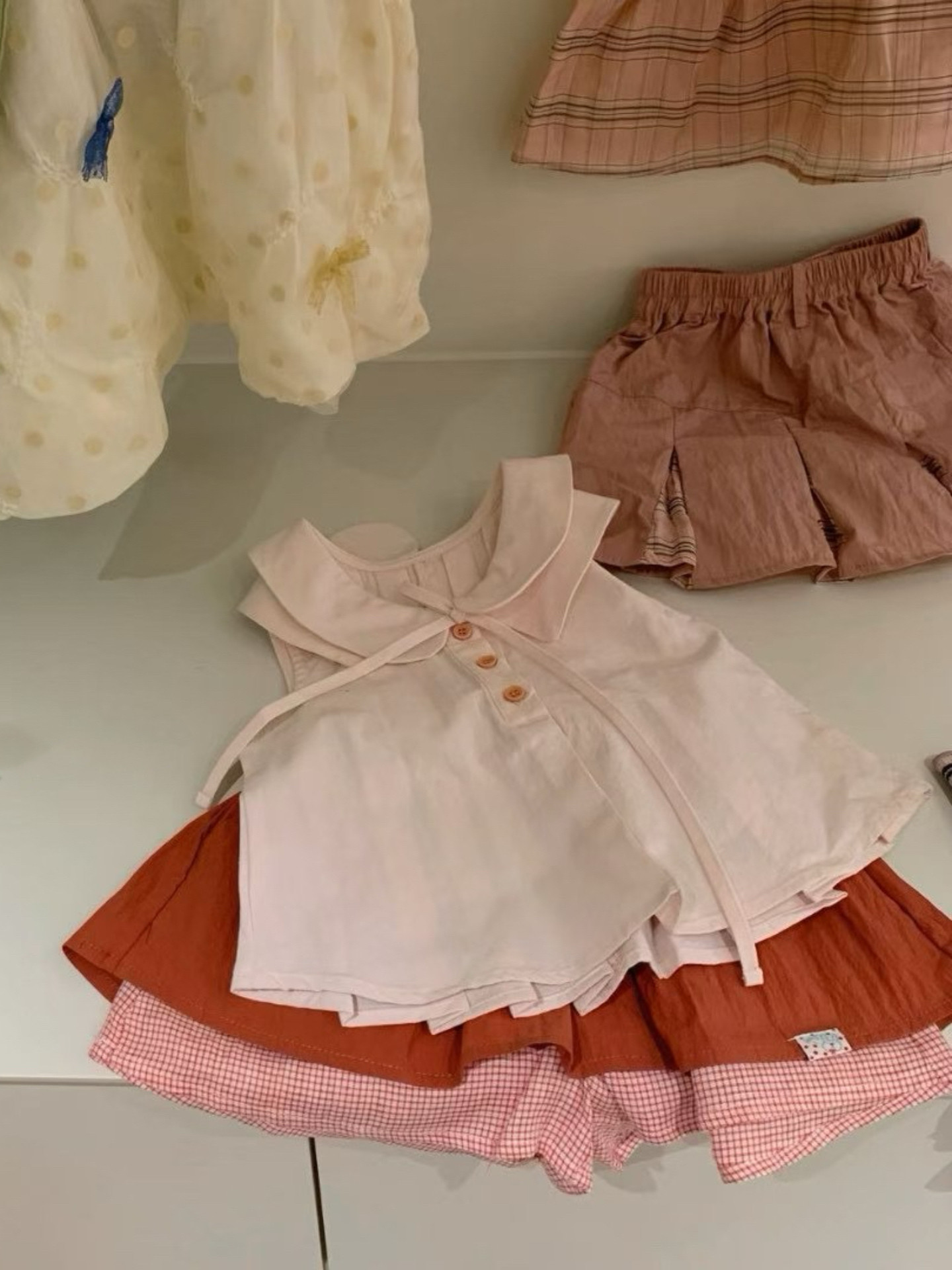 女童短袖娃娃衫夏装2026新儿童无袖T恤上衣+百褶裙短裙千禧风套装